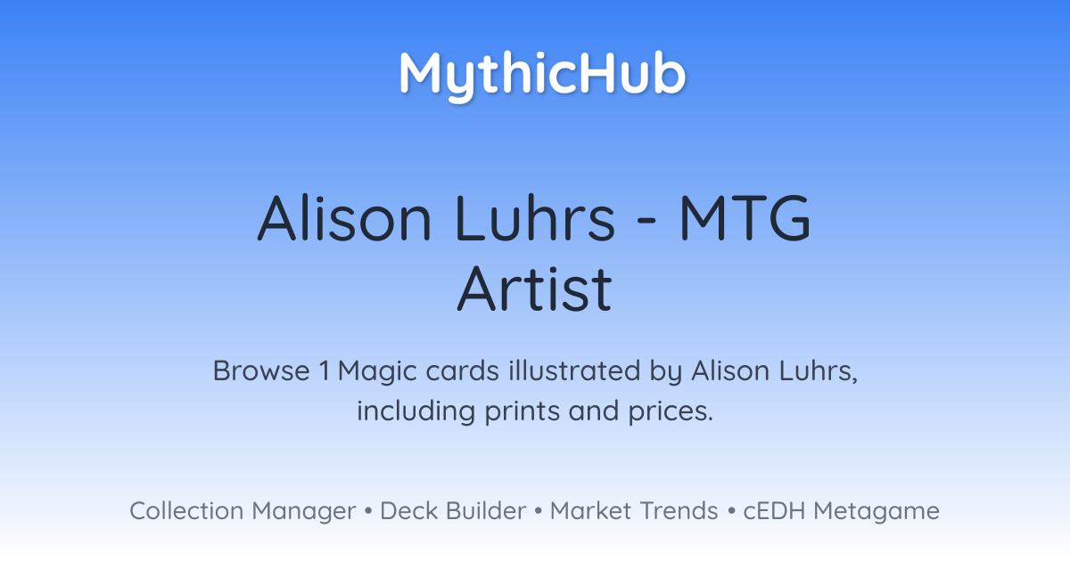 Browse 1 Magic cards illustrated by Alison Luhrs, including prints and prices.