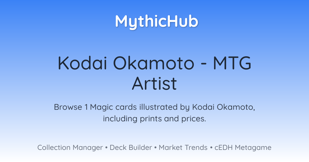 Browse 1 Magic cards illustrated by Kodai Okamoto, including prints and prices.