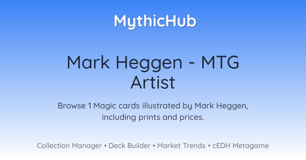 Browse 1 Magic cards illustrated by Mark Heggen, including prints and prices.