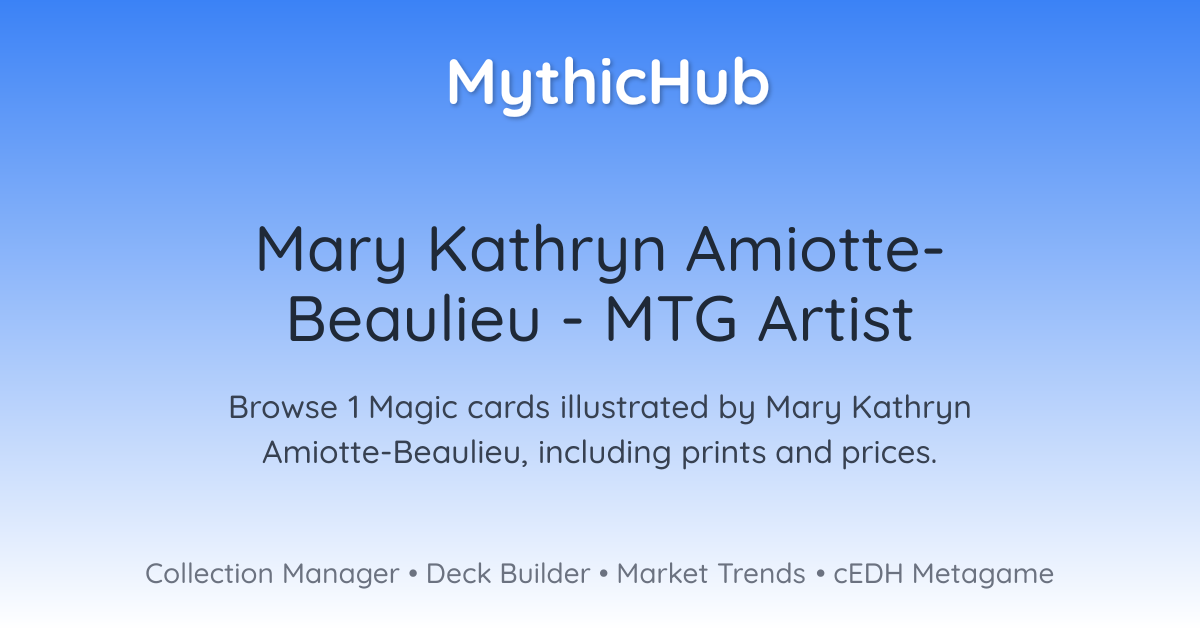 Browse 1 Magic cards illustrated by Mary Kathryn Amiotte-Beaulieu, including prints and prices.