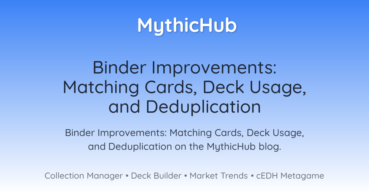 I'm excited to share a set of binder improvements that make it easier to understand your collection and plan decks. Inside the binder card dialog you will now find two new tabs: Matching cards and Deck usage. I also added a guided Deduplicate Cards dialog that helps you quickly merge duplicate entries in a safe way.