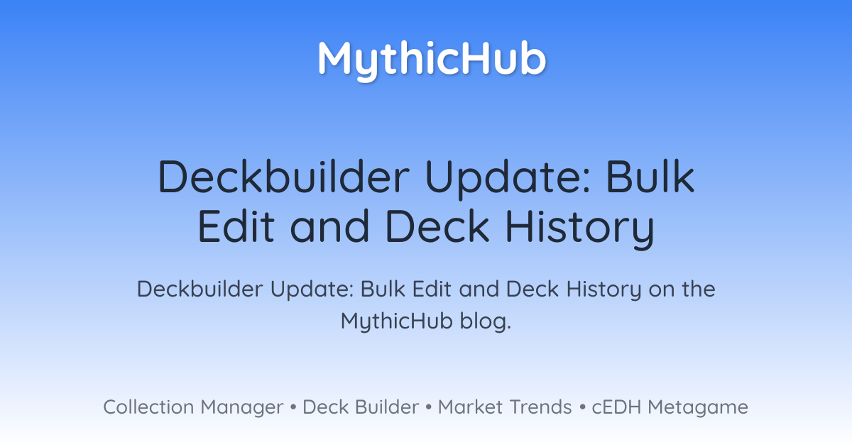 I am always looking for ways to improve and expand MythicHub. If you have suggestions for additional deckbuilder improvements or history features, let me know.