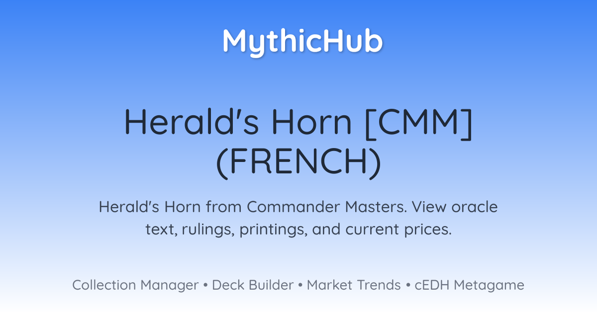 Au moment où le Cor du héraut arrive sur le champ de bataille, choisissez un type de créature.Les sorts de créature du type choisi que vous lancez coûtent