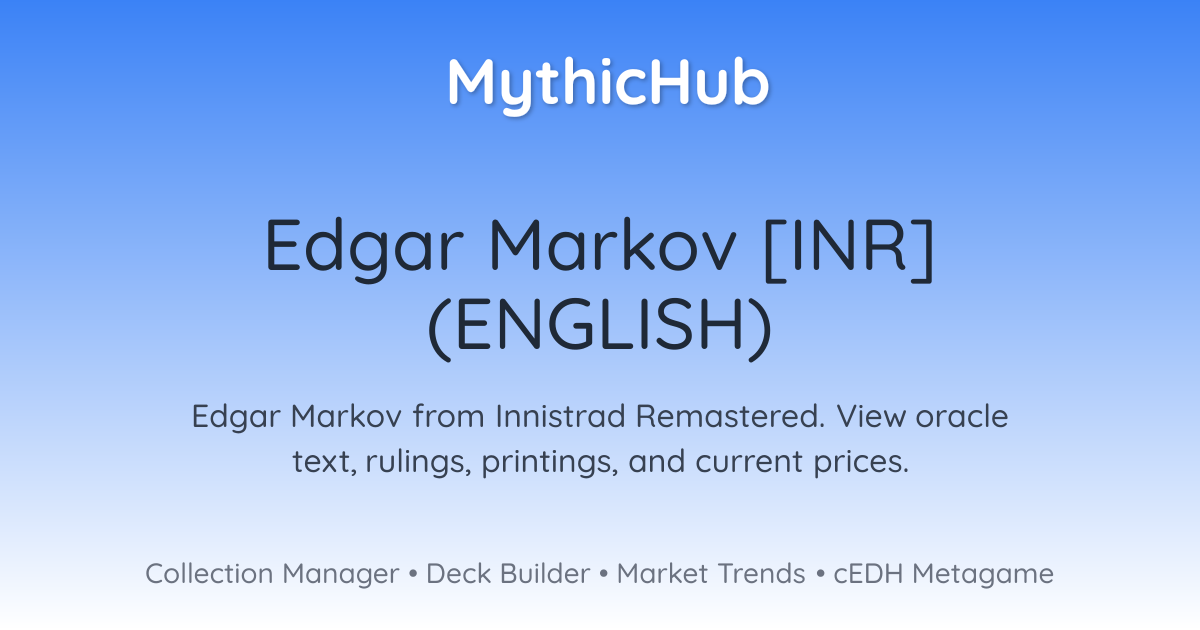 Eminence β Whenever you cast another Vampire spell, if Edgar is in the command zone or on the battlefield, create a 1/1 black Vampire creature token.First strike, hasteWhenever Edgar attacks, put a +1/+1 counter on each Vampire you control.