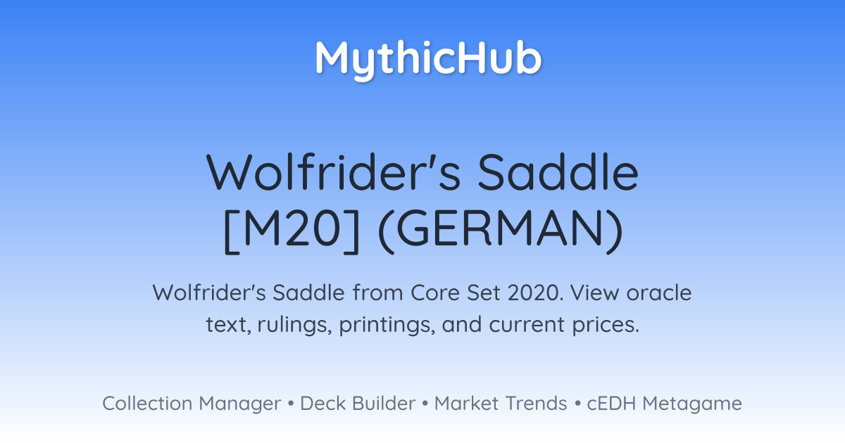 Wenn der Wolfsreiter-Sattel ins Spiel kommt, erzeuge einen 2/2 grünen Wolf-Kreaturenspielstein und lege den Wolfsreiter-Sattel dann an ihn an.Die verzauberte Kreatur erhält +1/+1 und kann nicht von mehr als einer Kreatur geblockt werden.Ausrüsten