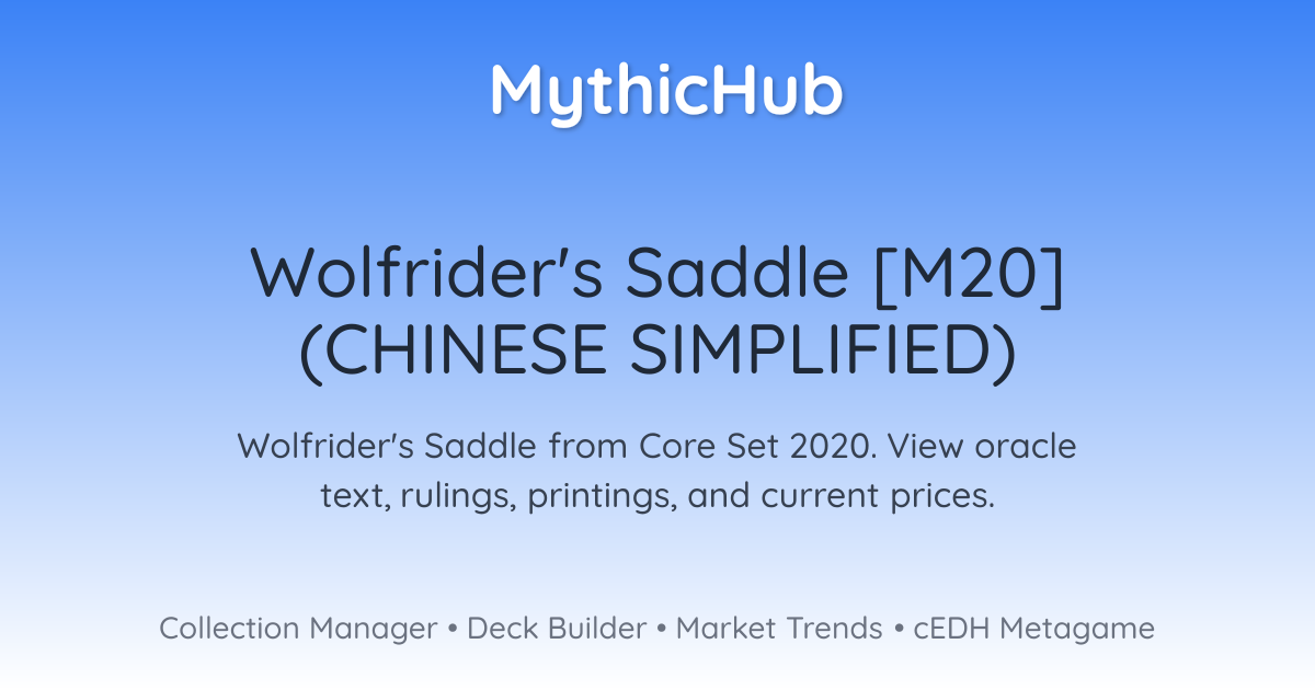 当狼骑兵座鞍进战场时,派出一个2/2绿色的狼衍生生物,然后将狼骑兵座鞍装备于其上。佩带此武具的生物得+1/+1,且不能被多于一个生物阻挡。佩带