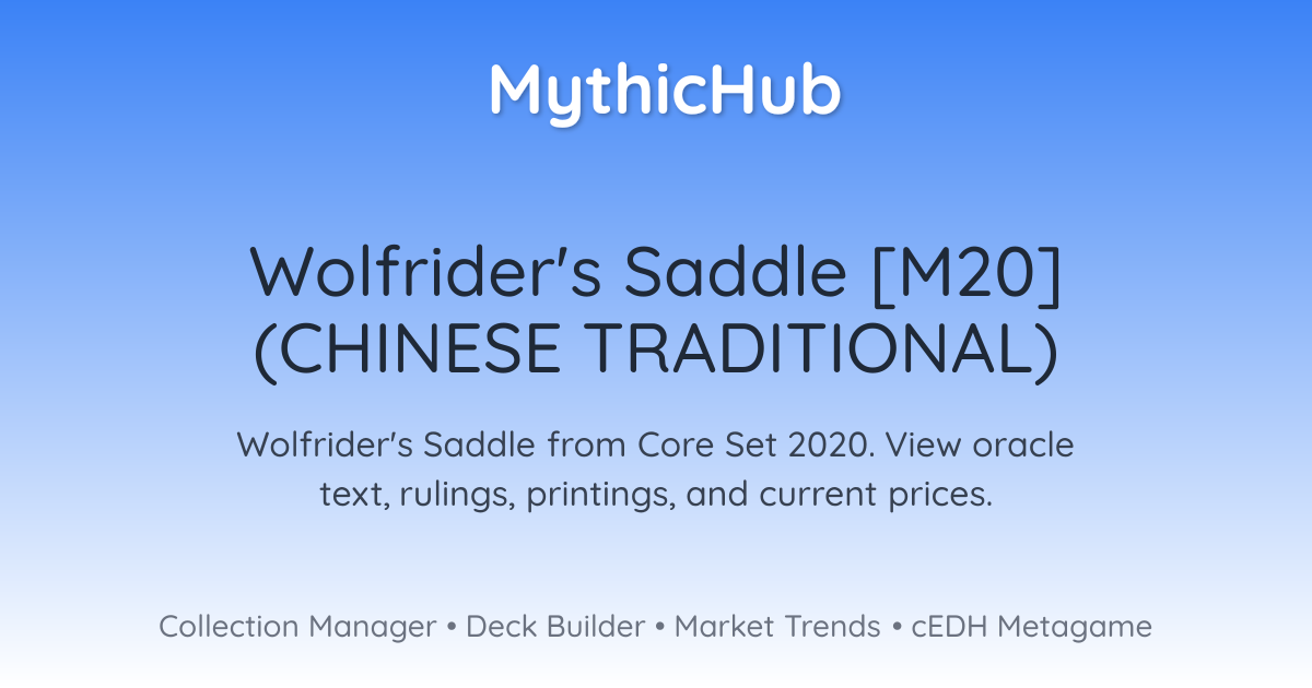 當狼騎兵座鞍進戰場時,派出一個2/2綠色的狼衍生生物,然後將狼騎兵座鞍裝備於其上。佩帶此武具的生物得+1/+1,且不能被多於一個生物阻擋。佩帶
