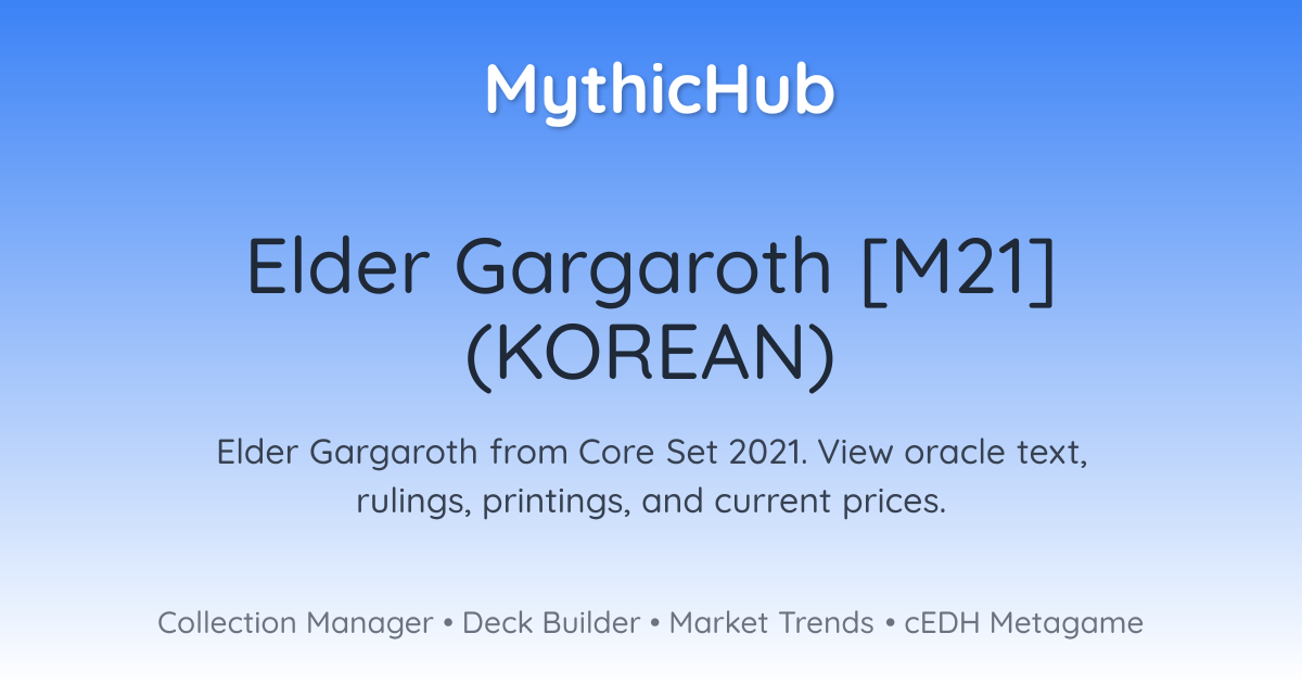 경계, 대공, 돌진장로 가르가로스가 공격 또는 방어할 때마다, 한 개를 선택한다 —• 3/3 녹색 야수 생물 토큰 한 개를 만든다.• 당신은 생명 3점을 얻는다.• 카드 한 장을 뽑는다.