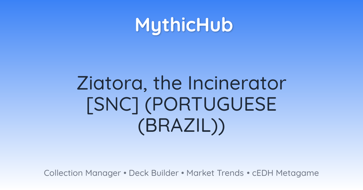 VoarNo início de sua etapa final, você pode sacrificar outra criatura. Quando você faz isso, Ziatora, a Incineradora, causa a qualquer alvo dano igual ao poder daquela criatura e você cria três fichas de Tesouro.