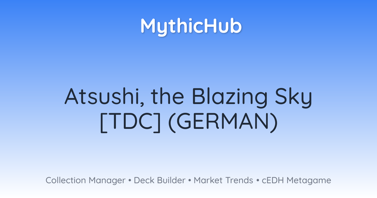 Fliegend, verursacht TrampelschadenWenn Atsushi stirbt, bestimme eines —• Schicke die obersten zwei Karten deiner Bibliothek ins Exil. Du kannst sie bis zum Ende deines nächsten Zuges spielen.• Erzeuge drei Schatz-Spielsteine.