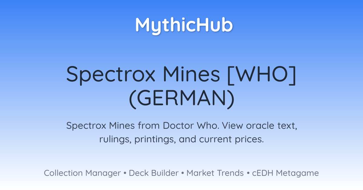Wenn du zu den Spectrox-Minen weltenwanderst und zu Beginn deines Versorgungssegments, verlierst du 3 Lebenspunkte und erzeugst einen Schatz-Spielstein.Immer wenn das Chaos hereinbricht, erzeuge einen Speise-Spielstein und einen 2/2 schwarzen Mensch-Räuber-Kreaturenspielstein.
