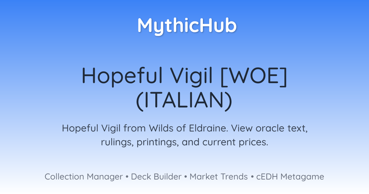 Quando la Veglia Speranzosa entra nel campo di battaglia, crea una pedina creatura Cavaliere 2/2 bianca con cautela.Quando la Veglia Speranzosa viene messa in un cimitero dal campo di battaglia, profetizza 2.![]()