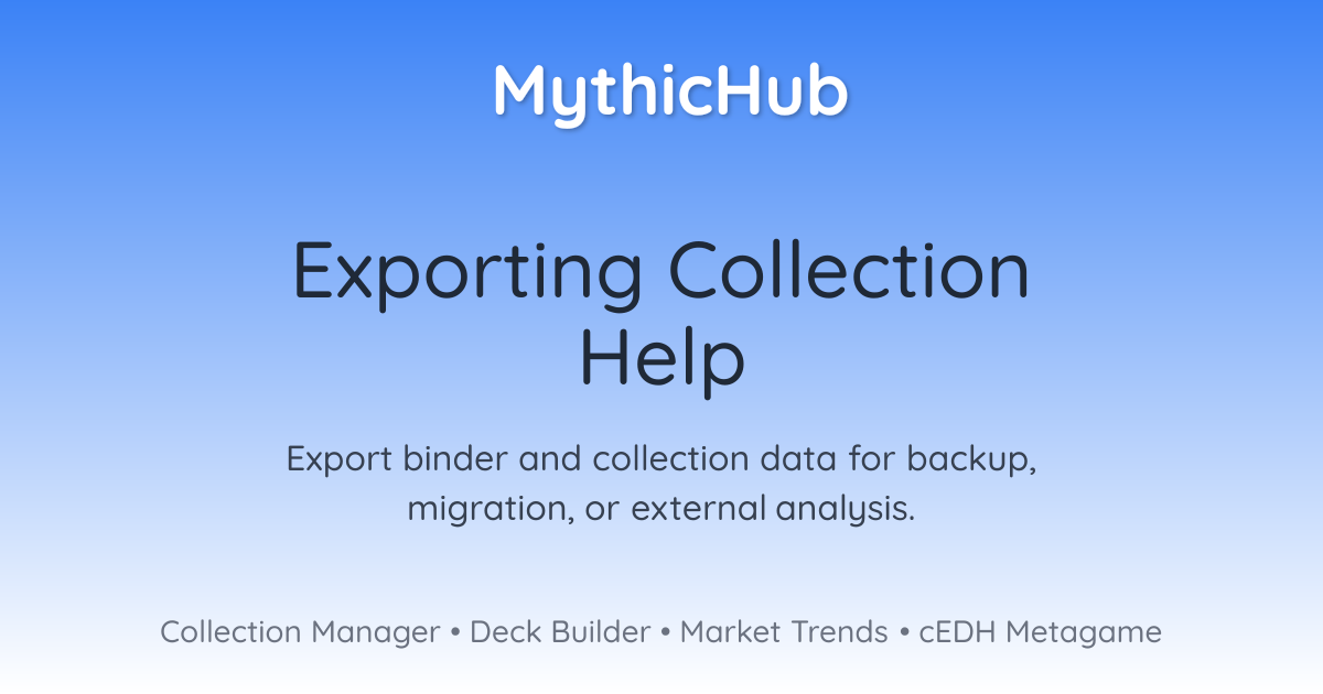 - Sharing Collections: Send your export file to friends or fellow collectors who can import it into their own MythicHub account