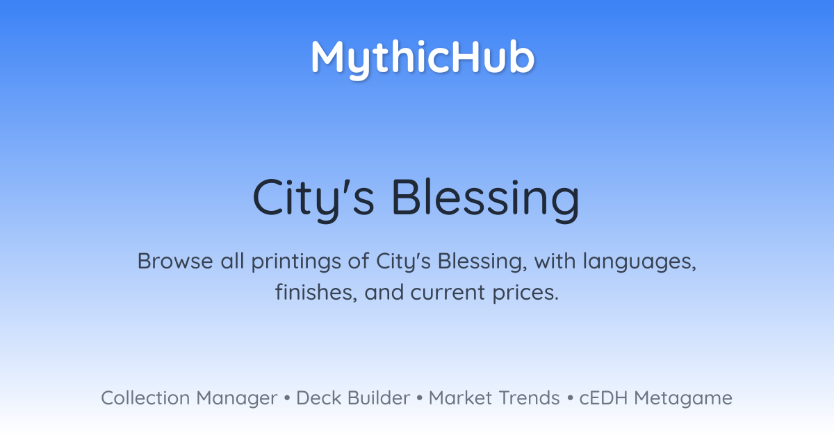 Browse all printings of City's Blessing, with languages, finishes, and current prices.