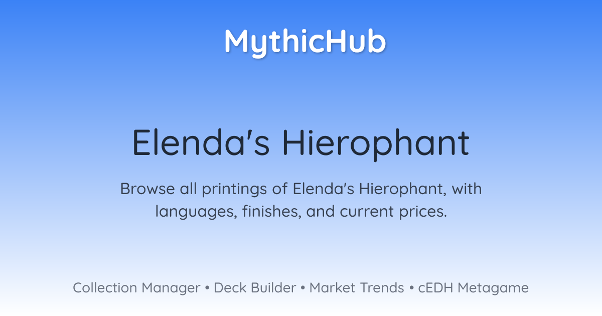 Browse all printings of Elenda's Hierophant, with languages, finishes, and current prices.