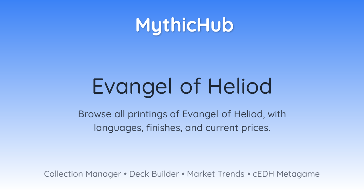 Browse all printings of Evangel of Heliod, with languages, finishes, and current prices.