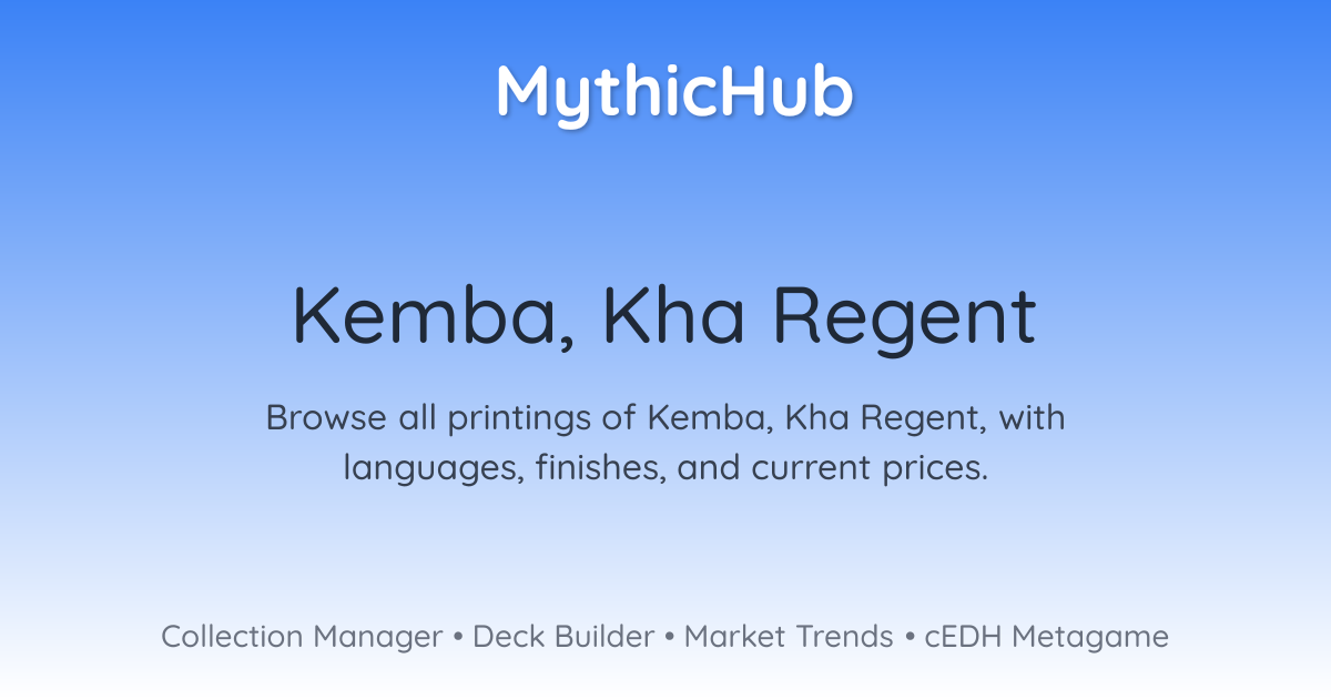 Browse all printings of Kemba, Kha Regent, with languages, finishes, and current prices.