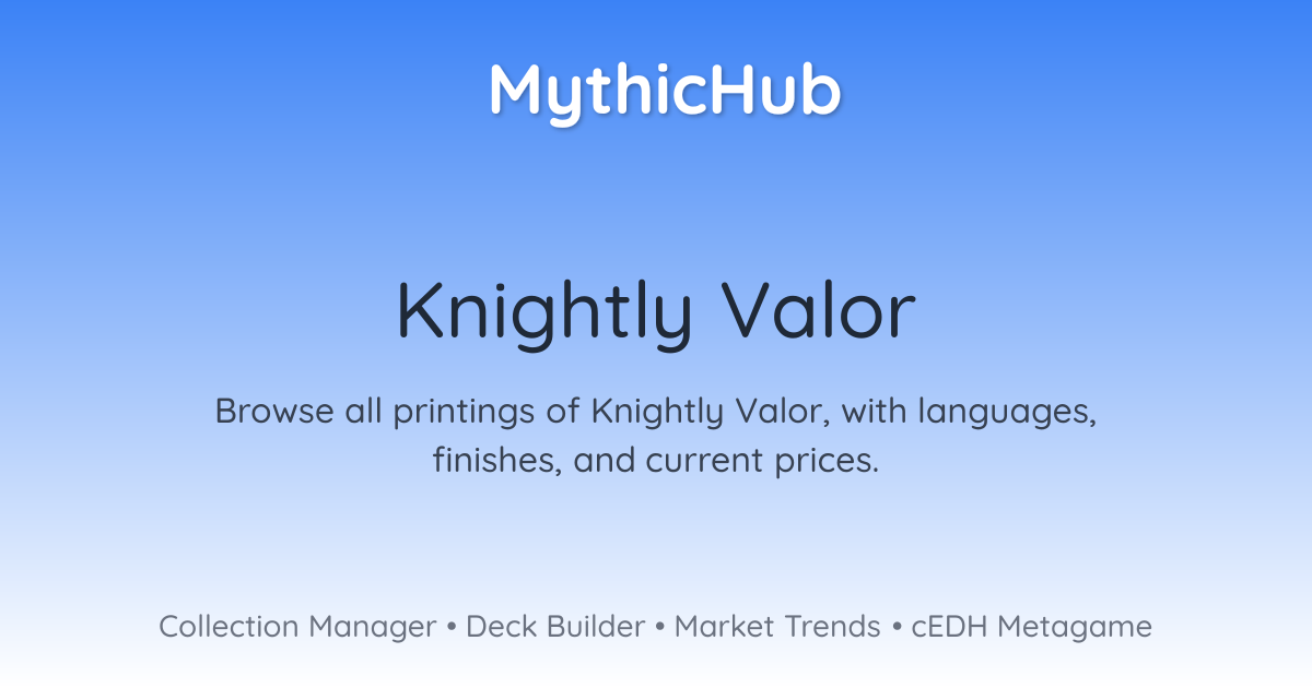Browse all printings of Knightly Valor, with languages, finishes, and current prices.