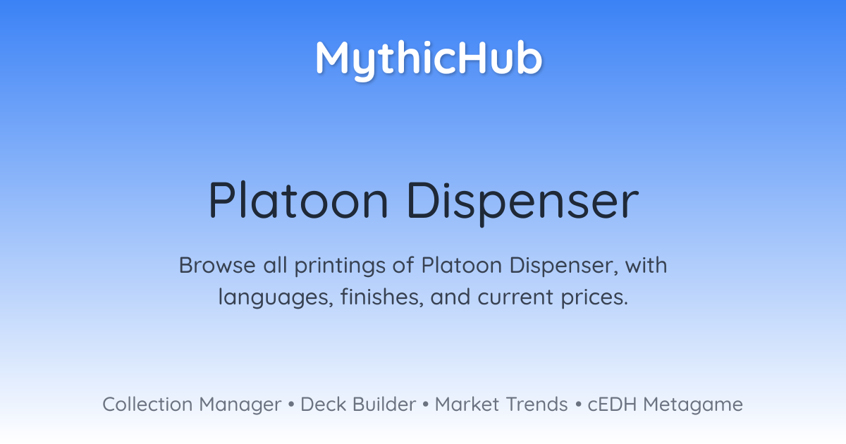 Browse all printings of Platoon Dispenser, with languages, finishes, and current prices.