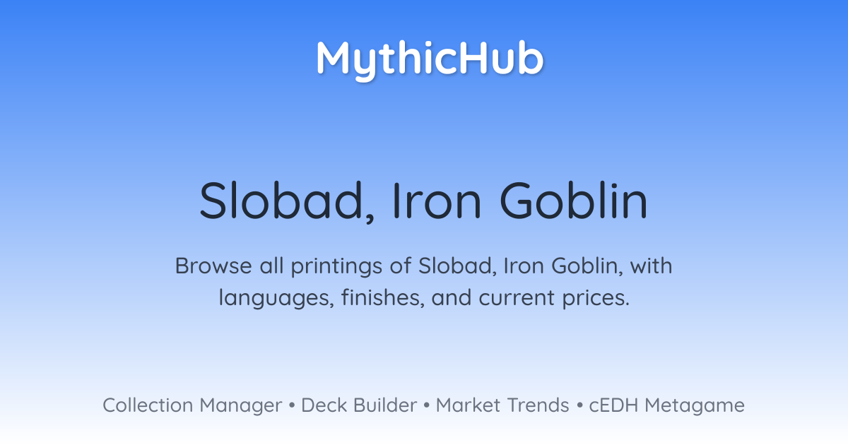 Browse all printings of Slobad, Iron Goblin, with languages, finishes, and current prices.
