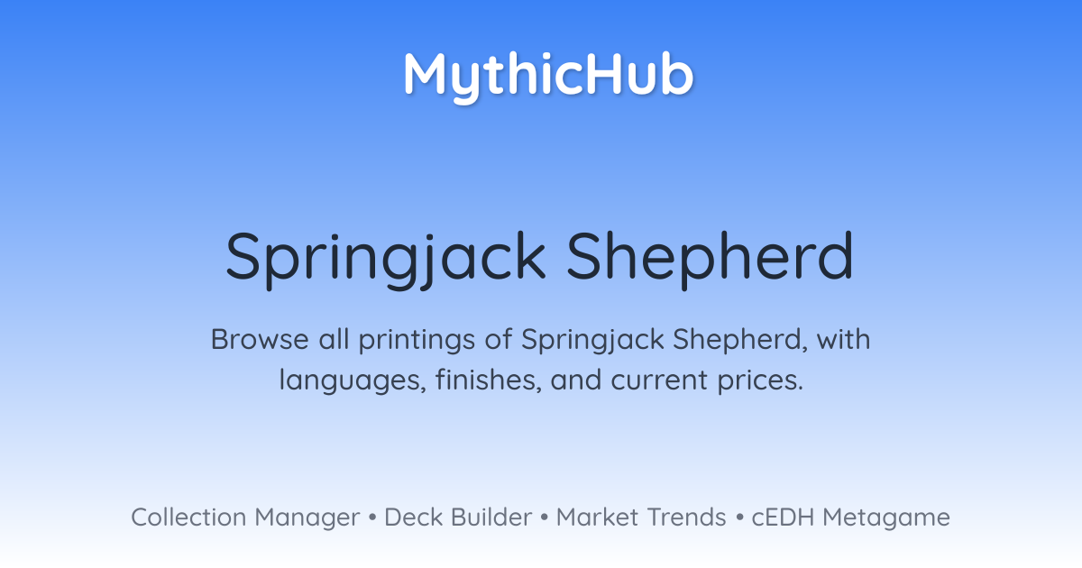 Browse all printings of Springjack Shepherd, with languages, finishes, and current prices.
