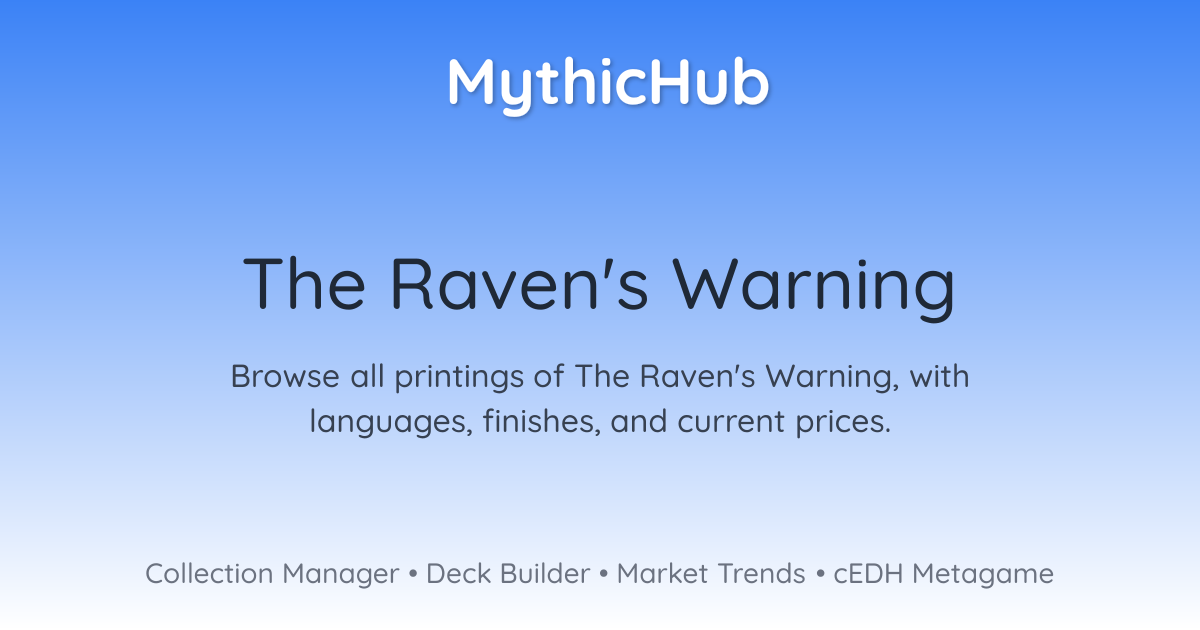 Browse all printings of The Raven's Warning, with languages, finishes, and current prices.