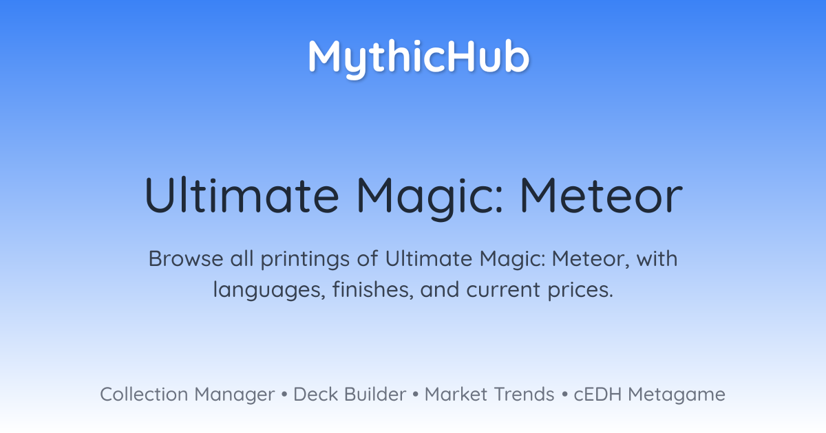 Browse all printings of Ultimate Magic: Meteor, with languages, finishes, and current prices.